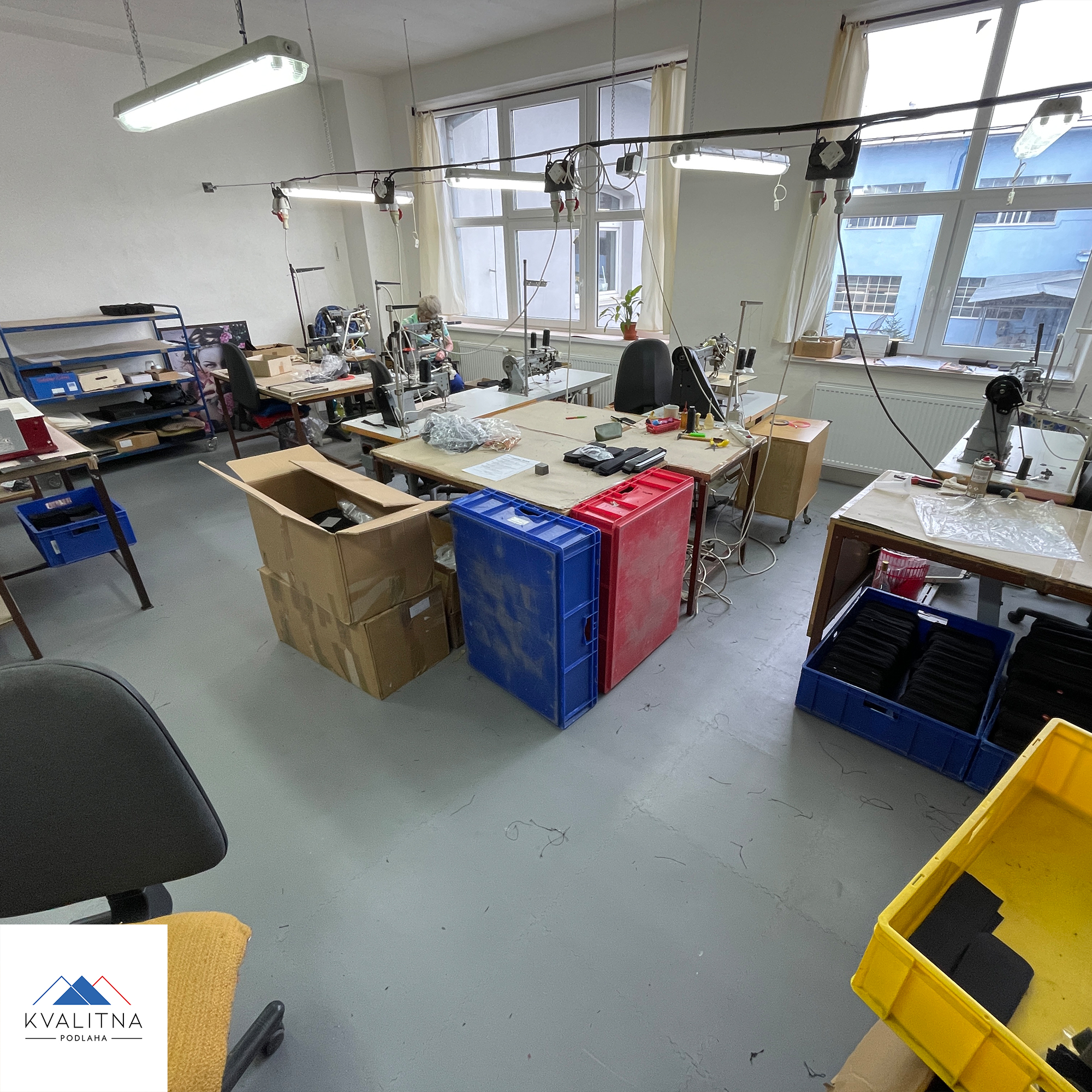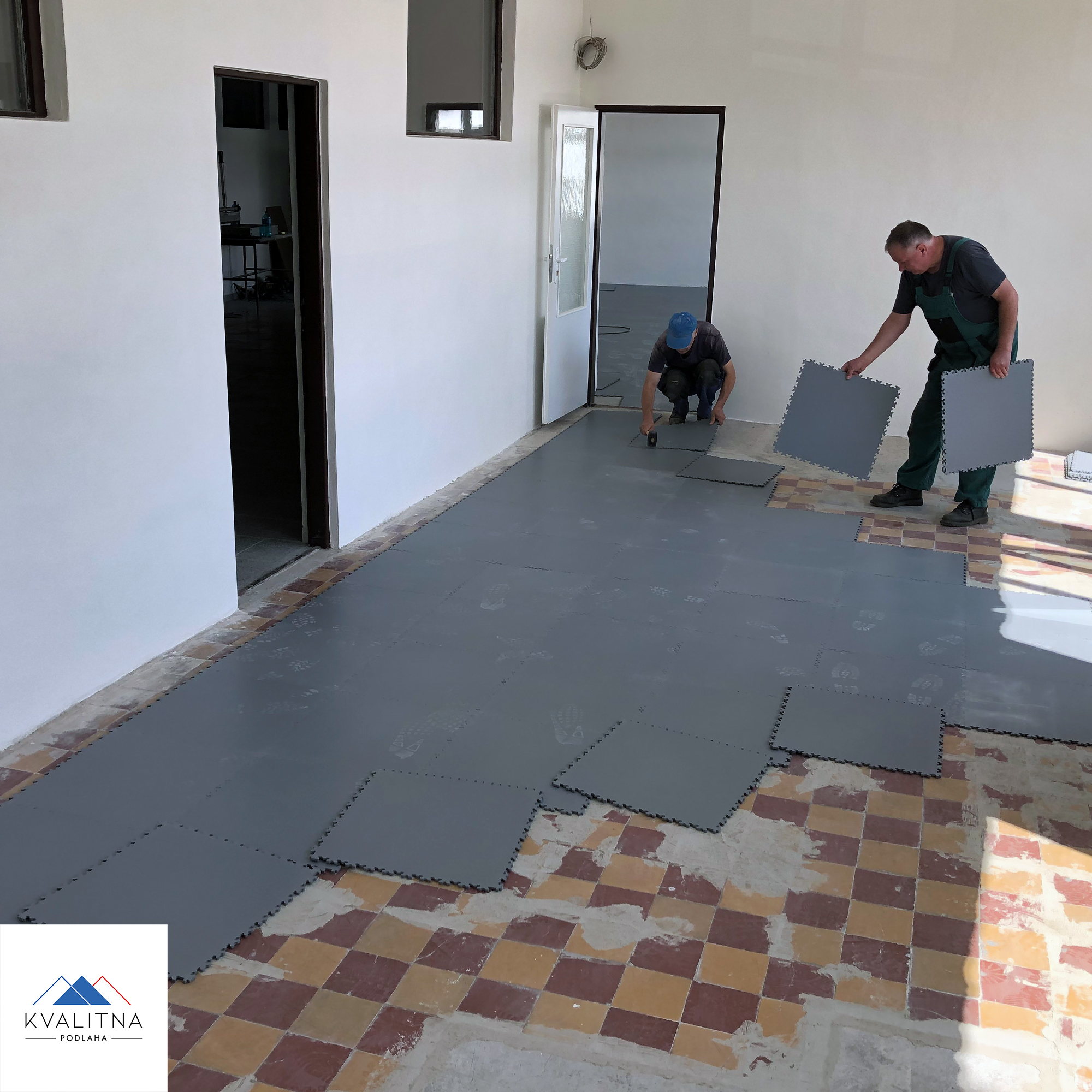 Rozloha prostoru: 98 m² Počet dlaždic: 392 Počet nájezdových ramp: 0 Trvání instalace/montáže: 12 hodin Typ dlaždic: PVC plastová podlaha Fortelock Industry Barva: Grey Povrch dlaždic: Kůže